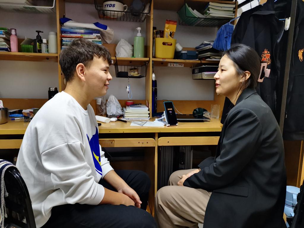 走访过程中,那老师亲切地与同学们进行交谈,询问了同学们对于新环境的适应状况、饮食、学习生活等情况,同时鼓励同学们新学期以全新的精神面貌积极投入到新的学习和生活中,积极地营造健康安全和谐的宿舍氛围。最后老师们叮嘱同学们遇到任何困难、疑惑要及时与学院辅导员和派驻老师进行沟通。同学们对此次走访表示既感动,又满意,纷纷表示要更加努力学习,回报学校、家长和社会。