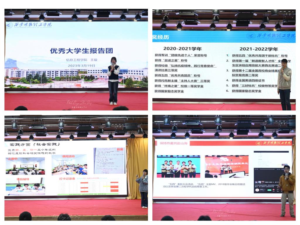 活动中,优秀报告团成员结合自身经历给学弟学妹们讲述了他们的经历和收获,分享了青春奋斗的故事,现场的学生认真聆听,备受鼓舞。