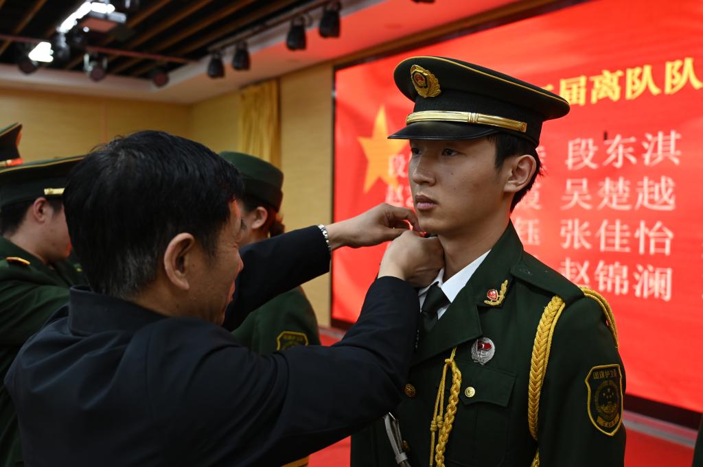 首先,李传斌老师为离队队员卸下服装标识和符号,并为他们颁发了荣誉证书。随后,还宣读了新一届国护队干部名单,并为他们颁发了任职聘书。