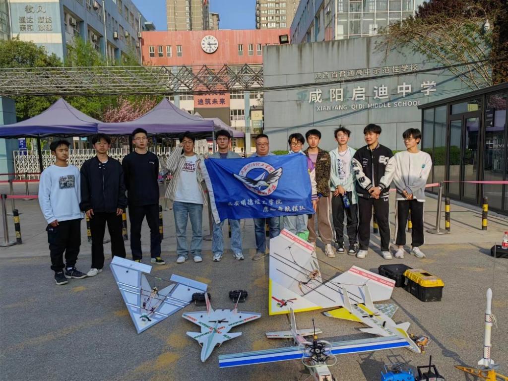 我校航模队抵达中学后受到了校领导的热情接待,随后与他们就我校专业设置、师资队伍、校园文化及考研就业等方面进行了密切交流,并在操场向观看开幕式的高三学生发放招生简章,同时就毕业生关心的在陕招生批次、招生计划、录取分数及学费等问题做详细解答,鼓励学生报考我校。