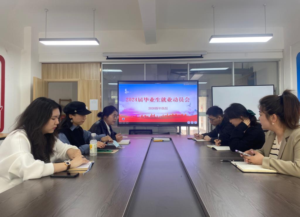 面对竞争日益激烈的就业环境,为进一步帮助我校2020级学生了解就业形势,引导学生树立正确的就业观念、提升就业能力,2020级年级组工作前置、提前谋划,于4月15日在明志楼北206召开了2024届毕业生就业动员会。会议由王兴鹏主持。