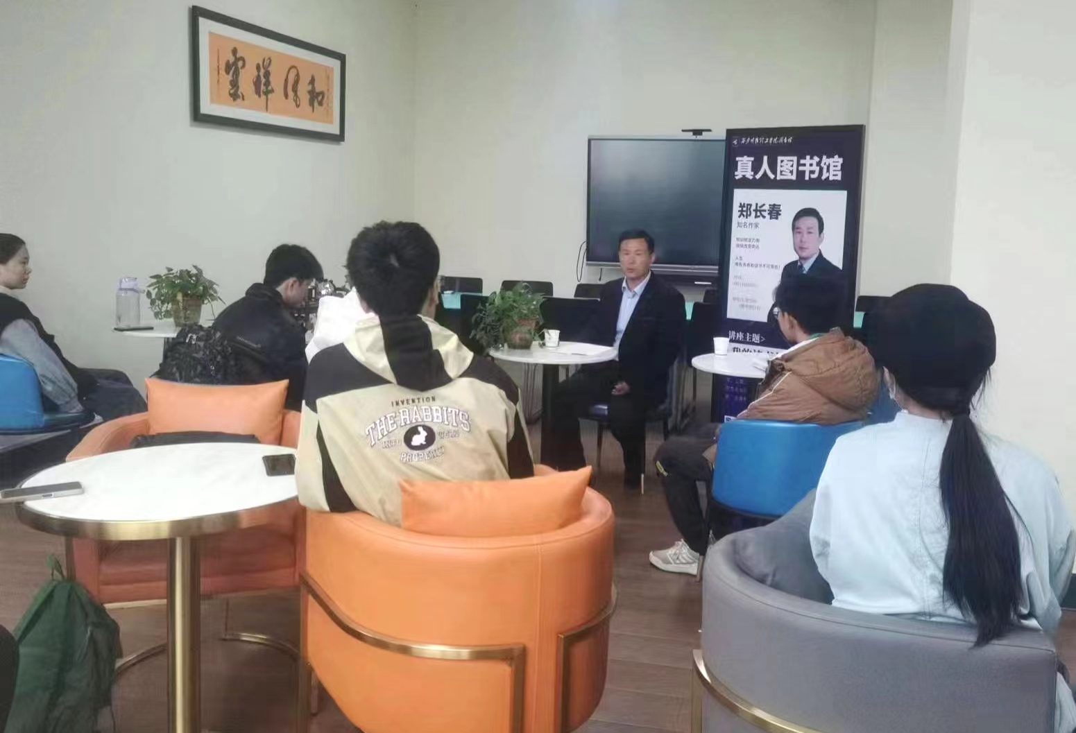 2023年4月23日,是第28个世界读书日,为引导广大青年学生养成良好的阅读习惯,加强学风建设,营造书香校园文化氛围,图书馆联合校团委,特邀知名作家、长篇小说《青台镇》作者郑长春老师召开“我的读书故事”分享交流会。本次会议在图书馆汇思空间进行,采用“真人图书馆”模式,校内20余名文学爱好者及图书馆阅读推广负责老师全程参与。