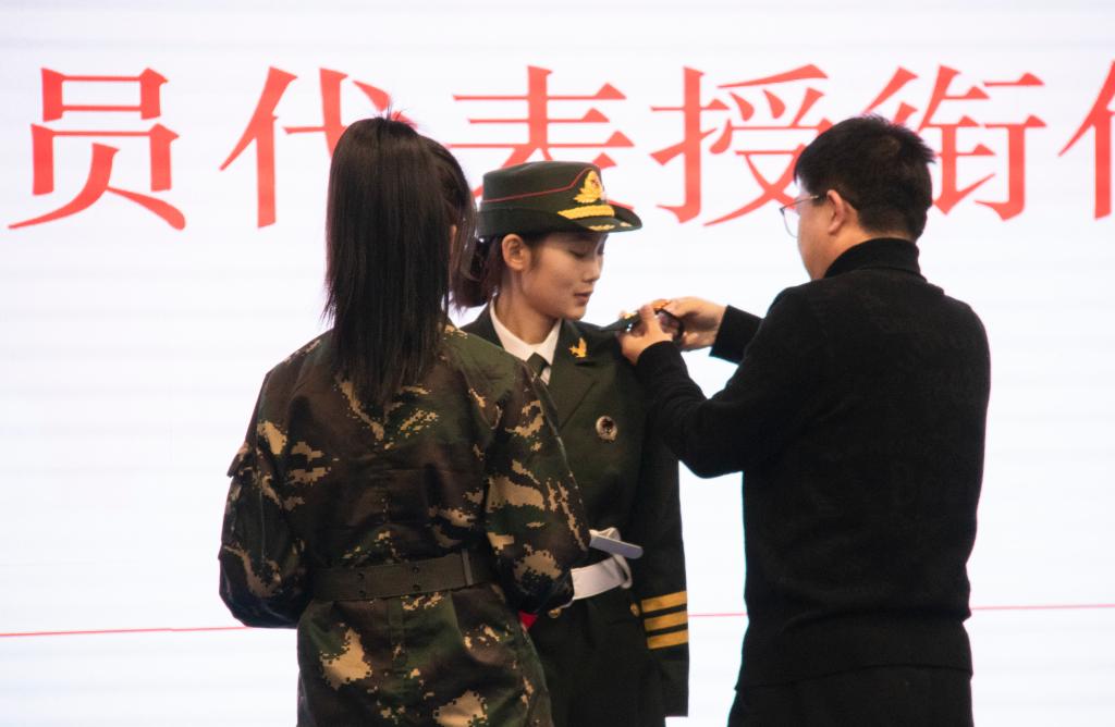 紧接着,校团委刘雄副书记宣布任命第二十三届国旗护卫队队长名单,并与李传斌老师共同为新任队长颁发了聘书;校团委乔建副书记宣布任命新一届国旗护卫队部长名单,并与学生工作部唐松轩老师共同为新任部长颁发了聘书;新老队长进行了授刀仪式;新任队长焦智昱宣读了入队正式队员名单并代表第二十三届国旗护卫队作了发言;刘雄副书记、李传斌老师为正式队员代表授衔;新一届全体队员做了入队宣誓,正式队员任勇杰作了表态发言。