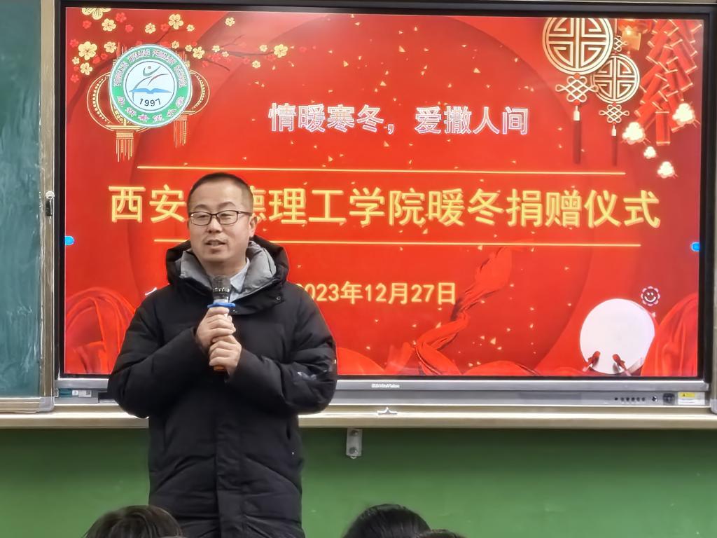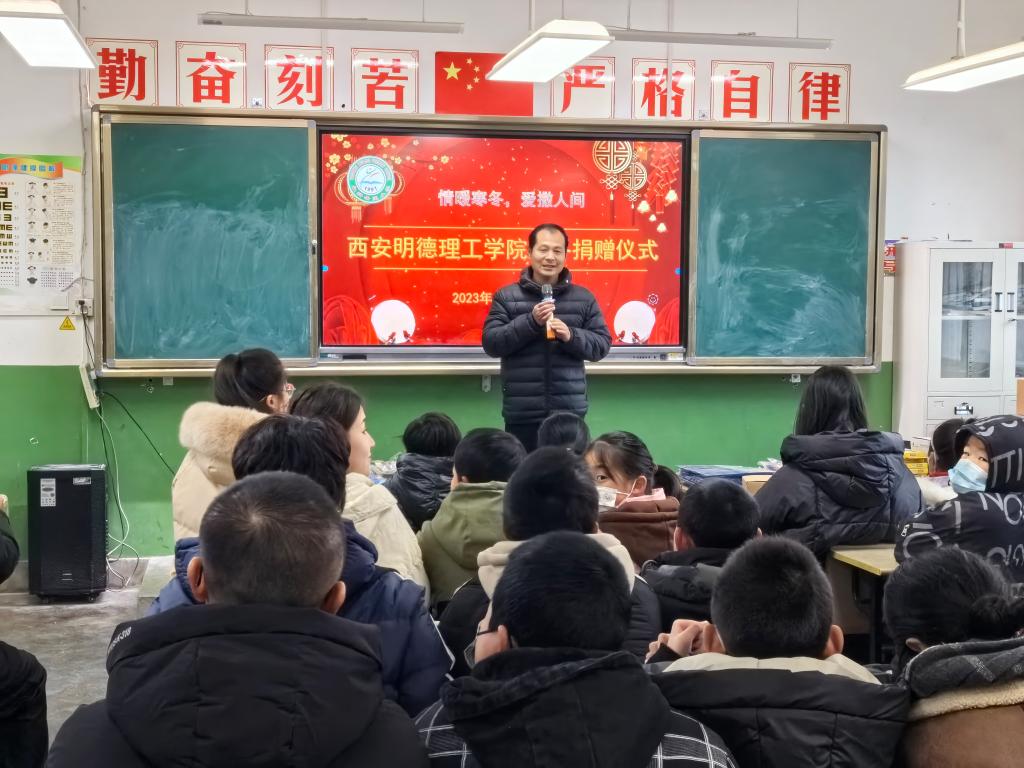 在捐赠仪式上,马克思主义学院副院长惠老师代表学校为永新希望小学全体师生送去冬日的祝福,惠斌老师讲到,孩子是国家和民族的未来,是祖国未来的栋梁,而乡村学校教育和硬件设施大多落后于城镇学校,西安明德理工学院想用实际行动支持乡村教育发展,为农村留守儿童和困境儿童送来了寒冬的温暖和关爱,为学校和学生解决一些实际困难。