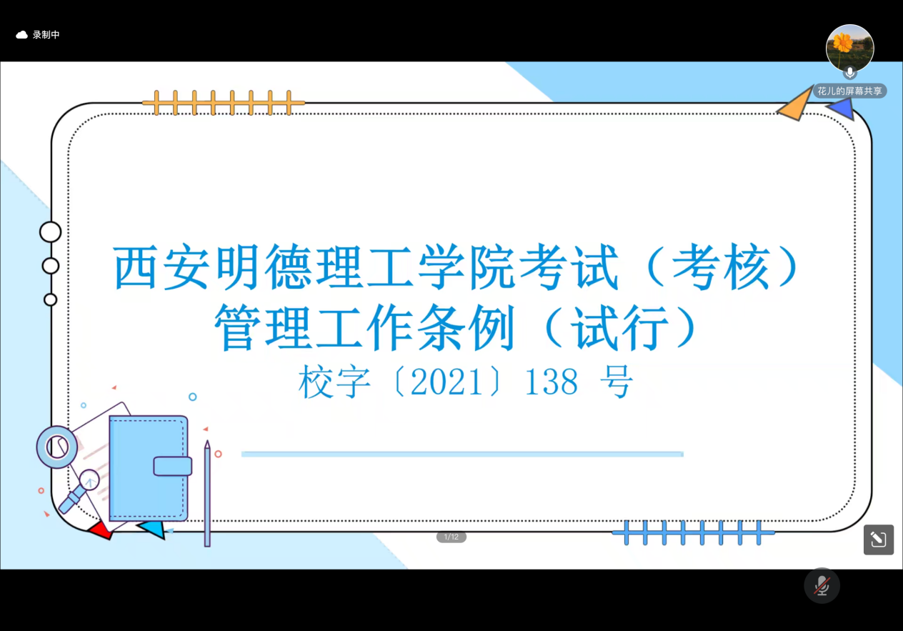 最后,为加强学校考试管理制度的规范性和科学性,提高学校考试管理水平,确保公平、公正、公开的考试环境,以及试卷的评阅规范,教务处教务科科长花婷详细解读了《西安明德理工学院(考核)管理工作条例(试行)》,希望全体教师及管理人员加强对管理制度的认识,而不仅仅只是形式上的执行,要从根本上理解和深化。