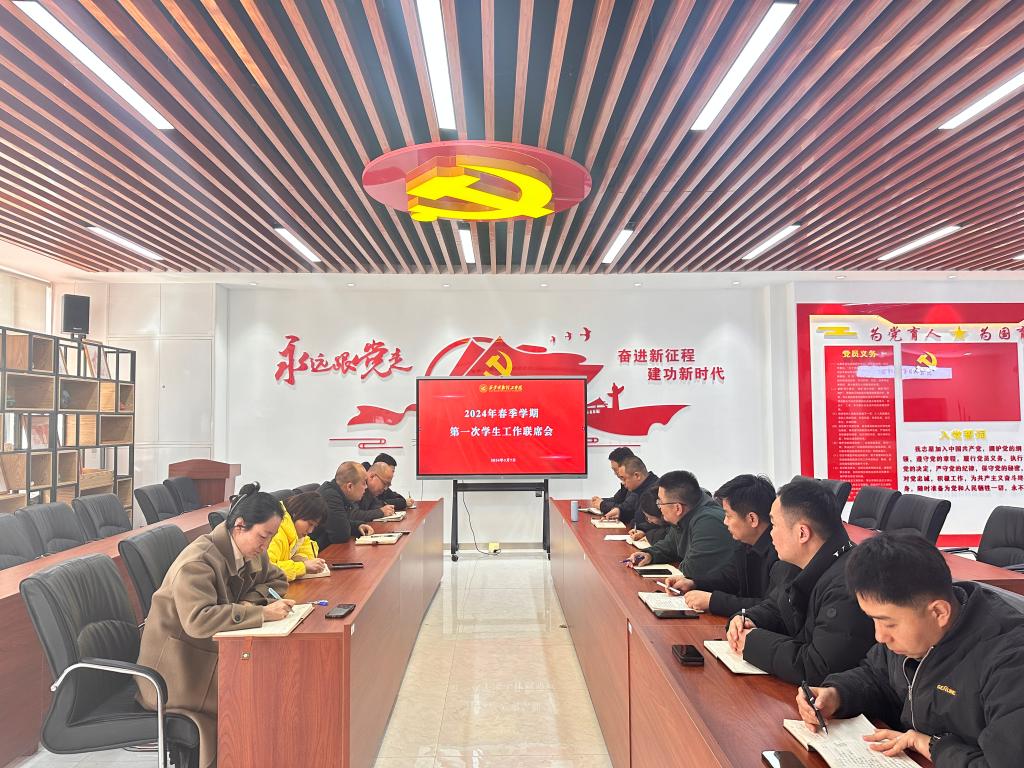 为贯彻落实好中央和省、市关于学校安全和学生管理工作的有关指示精神,全力做好安全和学生管理工作。3月7日上午,学校在明志楼北108会议室召开2024年春季学期第一次学生工作联席会议。智慧安全警务处处长宋敏纲,教务处副处长文亮,后勤管理处科长马晓晶,党委学生工作部、各学院有关人员参加会议,会议由党委学生工作部副部长童杨梓主持。