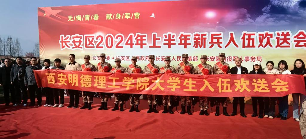 今年学校春季征兵工作在各部门和各学院的大力支持配合下有力开展,学生积极踊跃报名,经过初检、体检、政考、役前教育训练等层层选拔,长安区最终在我校实际定兵9名,他们即将奔赴全军各部队服役。童杨梓及老师们代表学校为即将入伍的9名学生颁发了纪念品并祝贺他们光荣入伍。童杨梓副部长勉励他们要尽快适应军营生活,继承和发扬人民军队的光荣传统,苦练军事技能,提高军政素质,争做“四有军人”。在各自的岗位上充分发挥自己的学业优势,积极投身到各项训练任务中,为军队现代化建设贡献智慧和力量。同时希望同学们要不忘初心,牢记学校老师的期望和亲人的嘱托,展现明德学子优良的精神风貌,扎根军营建功立业,为学校和家乡增光添彩。