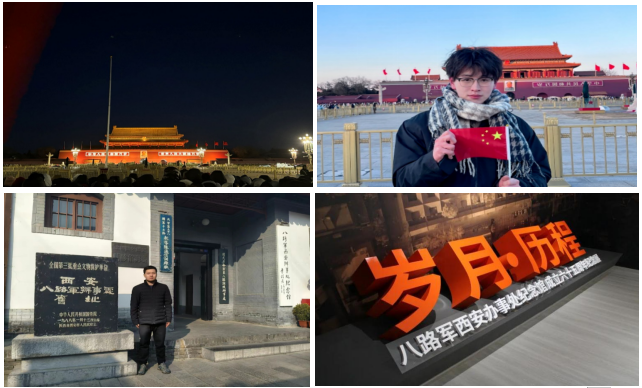 德育教育,如沐春风,浸润心灵。学校近300名学生在寒假期间阅读红色书籍、参观红色基地,参加公益活动,在学思践悟中践行社会主义核心价值观,丰富了理论知识,提升了品德修养。其中,艺术与设计学院学生王佳树在寒假期间第一次来到天安门广场,观看升国旗仪式。他说,“在天安门广场,最贴近祖国的心房,看到鲜艳的五星红旗冉冉升起,迎风飘扬。在那一刻,我深深地感受到有五星红旗的地方,就有信念的灯塔,如果信念有颜色,那一定是中国红”。经济与管理学院学生陈龙星走进西安八路军办事处纪念馆,学习革命先辈那种团结抗战、不怕牺牲、无私奉献、艰苦奋斗的抗战精神。他说,此次来到西安八路军办事处纪念馆是忆当年革命岁月,也是传承宝贵红色血脉,如今的我们生长在这盛世中华,皆因先辈们的艰苦奋斗和无私奉献,因此我们更应该努力做好新时代的赶考人,担负起实现民族伟大复兴的责任!