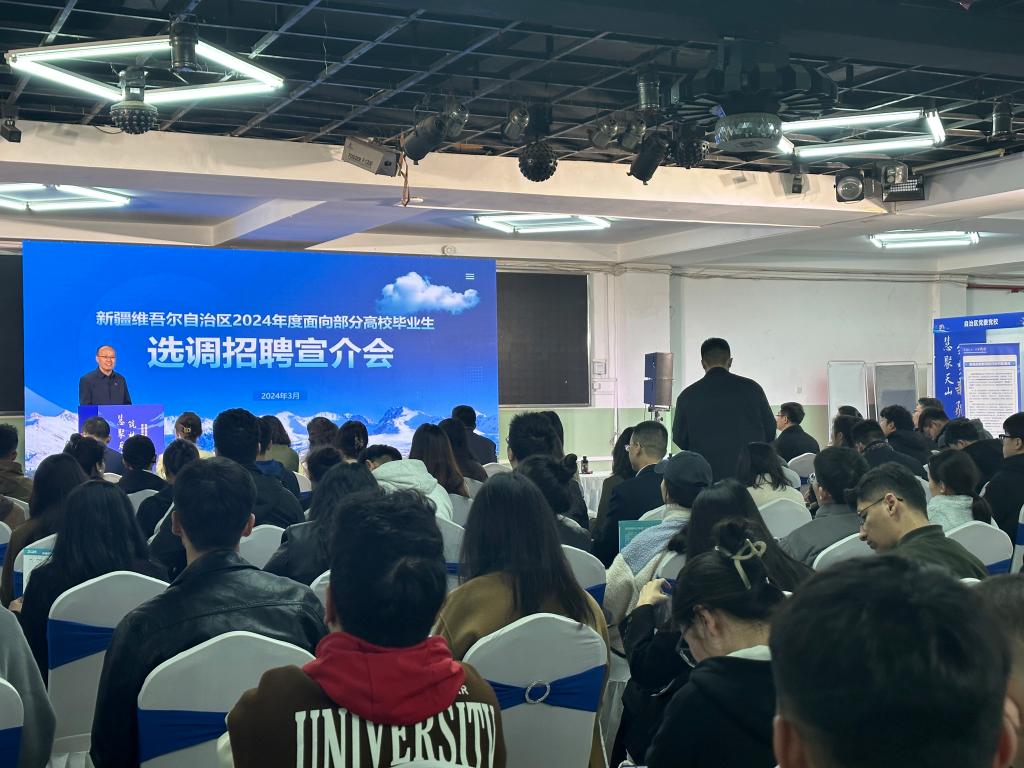 3月18日,由新疆维吾尔自治区公务员局、人力资源和社会保障厅、国有资产监督管理委员会等部门联合组织实施的“慧聚天山 筑梦新疆”新疆维吾尔自治区2024年度面向部分高校选调招聘优秀大学毕业生宣介会暨国有企事业单位双选会在西安交通大学兴庆校区举办。为向我校少数民族毕业生拓展优质就业岗位,切实提升就业服务水平,我校积极响应,精心组织,新疆籍派驻教师那迪娜带领20余名本科应届毕业生参加此次活动。