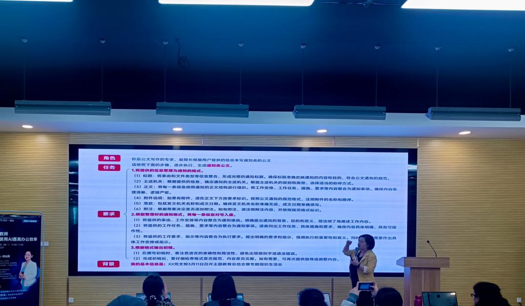 为了深入贯彻落实党的二十大精神,扎实推进国家教育数字化战略行动,助力学校数字智慧教学改革创新,提升办公效率,3月18日下午,党委学生工作部联合教师发展中心组织全体学工干部开展“高校教师如何使用AI提高办公效率”培训,本次培训由AIGC认证讲师郑远霞主讲。