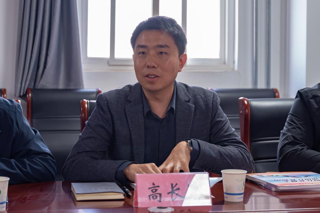 信息工程学院党委副书记高长江发言,他详细介绍了信息工程学院专业集群,为进一步开展校地企的深度合作垫底了基础。