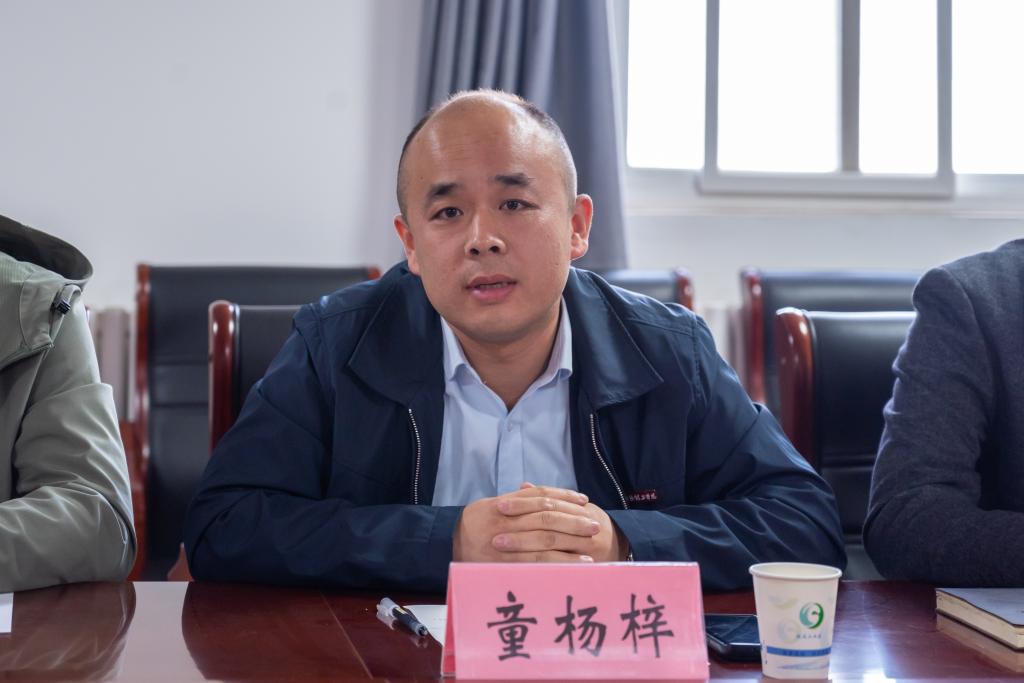 校团委书记童杨梓发言,他表示,西安明德理工学院团委与共青团扶风县委有着深厚的合作基础,校团委将不断加强校地共青团共建,组织青年学生在实践中参与基层活动,实现理论与实践相结合。
