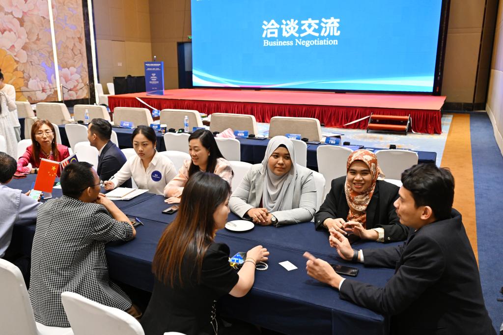 在洽谈交流环节,各方代表围绕农业及食品加工、新能源、旅游、科技、纺织、工程建设、现代服务业等领域进行了“一对一”深入对接、精准洽谈,初步达成44个合作意向。