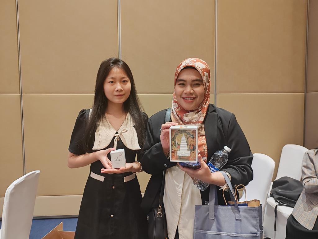 来自我校的西安霄麟文化创业有限公司团队的同学向马来西亚代表努尔•赛里尼•萨希米介绍了具有西安地标性的香薰产品,他们从西安历史文化、地方特征以及香薰的制作工艺等多方面介绍了香薰的由来。马来西亚代表对香薰的“香”表示了深刻的赞同,认为这种“香”是独一无二,并且具有西安地方特色的气息。