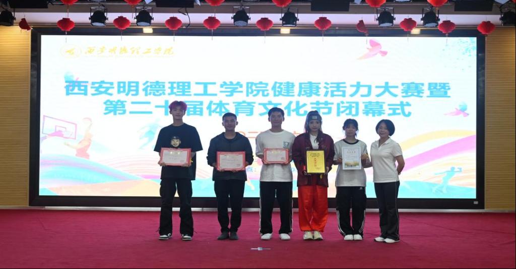 最后,由本届体育节赛事主管程家星老师宣布获得体育文化节前三名的获奖单位,并为获奖队伍颁奖。高等职业技术学院、信息工程学院、经济管理学院依次获本届体育文化节团体前三名。