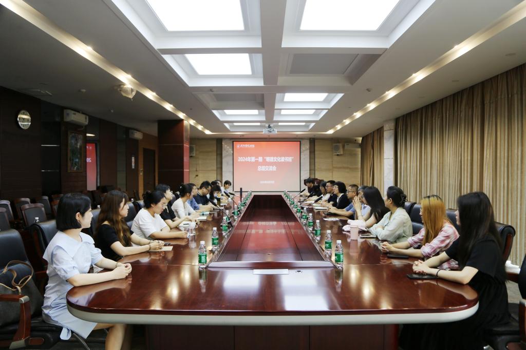 自“明德文化读书班”开班仪式后,2024年上半年,该读书班已连续组织开展“明德文化”主题读书活动六期。为进一步总结经验,拓展工作思路,提升明德文化育人工作实效,6月20日上午,学校在图书馆407会议室组织召开了2024年上半年“明德文化读书班”工作总结交流会。我校“明德文化”建设项目特聘教授孔润年、马克思主义学院副院长惠斌、图书馆馆长王爱霞、智能制造与控制技术学院党委书记陈雪彬、读书班指导老师及学生代表们参加了会议。会议由图书馆馆长王爱霞主持。