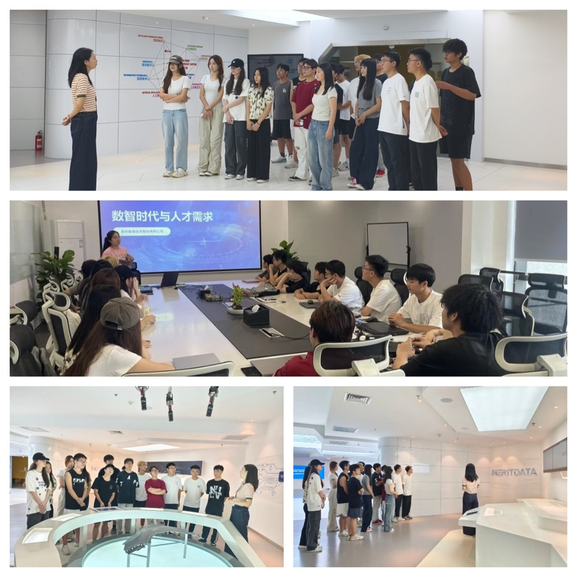 企业探访,开拓产业视野。同学们在专业教师黄婕的带领下赴企业参访,美林数据产教融合事业部李静带领同学们参观了企业办公环境和“预见智造”展厅,通过零距离接触大数据企业,同学们更加清晰地认识到当今时代掌握大数据技术、培养数据思维的重要性。随后,美林数据产教融合事业部高级咨询顾问詹妮老师为同学们带来了“数智时代与人才需求”的专题分享,詹老师通过不同行业场景案例分享,展现了大数据等前沿技术如何以前所未有的方式重塑各行各业,详细介绍了市场对数据思维人才的旺盛需求和不同岗位多元化技能要求。