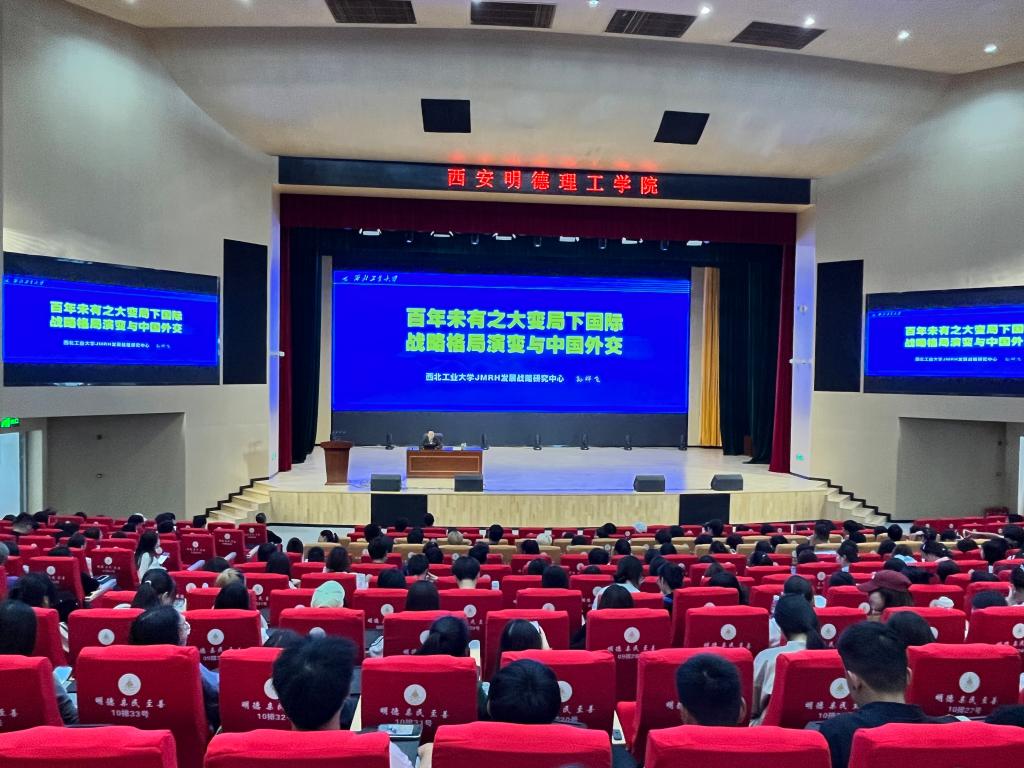 10月9日下午,我校成功举办“明德大讲堂”第五十讲,邀请西北工业大学国防动员研究中心主任孙晔飞教授作了题为“百年未有之大变局下国际战略格局演变与中国外交”的专题讲座。此次讲座由马克思主义学院主办,党委组织宣传部和校团委协办,全校师生800余人参加,讲座由马克思主义学院与通识教育学院党委书记王君涛主持。