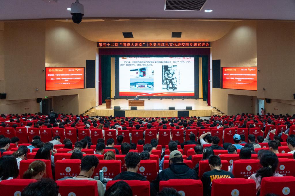 为帮助广大明德学子深入了解中国共产党不畏艰难困苦、开拓进取的光辉历史,汲取中国共产党百年奋斗的宝贵经验和精神力量。10月17日晚上18点30分,我校邀请西安邮电大学马克思主义学院教授袁武振做客第52期“明德大讲堂”,作题为“中国共产党在陕西百年奋斗的重大成就和历史经验”的主题讲座。本次讲座在四季连廊报告厅举行,全校1000多名师生参加,讲座由马克思主义学院副院长惠斌主持。