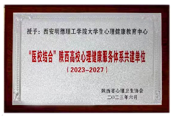 一步一脚印,一步一成长。2020年7月,中共陕西省委教育工委制订并印发了《陕西普通高校心理健康教育与咨询中心建设标准(试行)》(陕教工〔2020〕136号),启动了陕西普通高校心理健康教育与咨询中心建设工作。学校主动申请、积极筹备,对照新的建设标准认真开展自查工作,通过自评找准短板、查缺补漏、以评促建,在保证课程教学、咨询服务高质量开展的同时,重点围绕心理危机预防干预体系建设、心理育人宣传实践活动广泛开展、心理功能室软硬件设施升级完善、心理健康教育工作队伍素质提升等方面加强工作,打造形成了重视心理育人、强化预防干预、健全工作机制、普及实践活动“四位一体”的心理健康教育工作格局,探索确立了宣传教育常态化、实践活动系统化、朋辈互助规范化、家校联动制度化“四化驱动”心理健康教育工作模式,全面落实了学校、学院、班级、宿舍“四级协同”心理危机预防干预体系,系统集成了社会、家庭、学校、医院“四方联动”心理育人工作力量,顺利建成了设施一流、功能完备、面积近400平米的心理功能室。学校获批陕西省高校“线上线下混合式”一流本科课程,获准校级教学团队立项,获评陕西高校心理健康教育与咨询标准化中心,荣膺陕西高校艺术疗愈教学基地等。