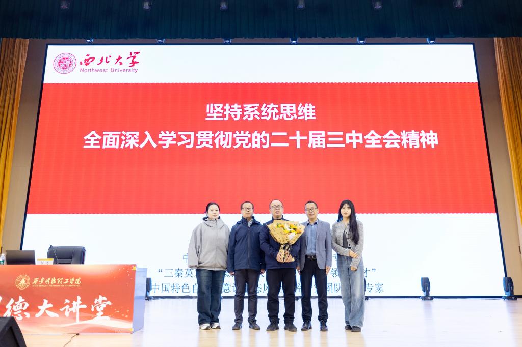 10月24日晚,我校第54期“明德大讲堂”在四季廊桥报告厅隆重举行。本次讲座邀请到西北大学马克思主义学院院长何博教授作题为“坚持系统思维,全面深入学习贯彻党的二十届三中全会精神”的主题讲座。讲座由党委组织宣传部副部长张亚平主持。