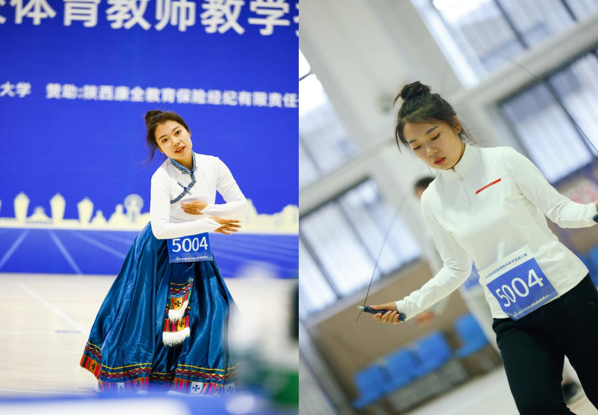 张晓娟老师精心备赛,将藏族文化的精髓巧妙地融入健美操表演中,使每一个动作都成为文化传承的符号。她通过细腻而优美的献哈达动作,向参赛运动员们传递着美好的祝愿。同时,在跳绳体能测试中,张老师对速度的把握游刃有余,斩获满分。