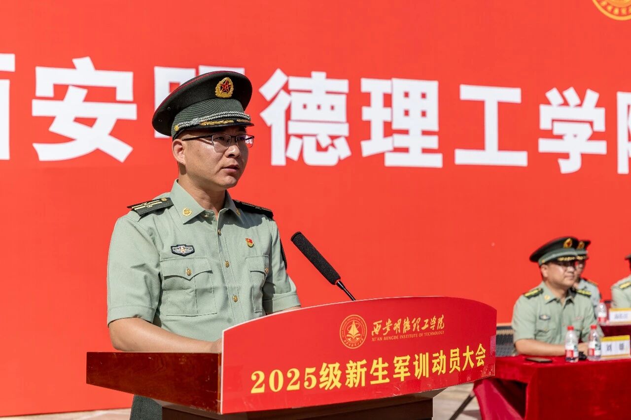 为上好军训第一课,他向全体参训学生提出四点要求:第一,端正态度,主动投入。要认识到,军训承载着增强国防意识的责任和使命,将抗战精神融入军训的每一刻,让这份精神激励你们在军训中书写青春的壮丽诗篇。第二,听从指挥,严守纪律。在军训中要特别重视作风锤炼,自觉抓好作风养成。从整理内务的细致入微,到队列训练的一丝不苟,把锤炼军人作风贯穿军训全程,让军人作风成为你们一生的宝贵财富。第三,团结互助,携手共进。“孤举者难起,众行者易趋。”军训不仅是个人的历练,更是团队的协作。“有第一就拿,有红旗就扛”,增强荣誉感,形成凝聚力,答好军训卷。第四,重视安全,科学训练。希望全体教官坚持科学施训、文明带训、从严组训,根据学生体能特点制定渐进式训练方案,采取示范教学与个性化指导相结合的模式,确保训练质量,帮助同学们在军训中实现成长蜕变。