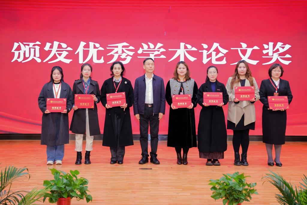 在闭幕式上,政研会民办分会的常务理事兼秘书长张周志,宣读了“融会党的创新理论,提升新时代‘大思政课’建设水平”学术研讨会主题征稿的获奖人员名单。我校提交的论文在数量和质量上均得到了政研会民办分会的高度认可,其中,荣获一等奖的论文有3篇,二等奖6篇,三等奖8篇,优秀奖5篇。陕西省高等学校思想政治教育研究会民办本科高校分会会长、西安外事学院党委书记雷西合、西安培华学院党委书记刘锋、西安交通工程学院党委书记李萍分别为获奖人员颁奖。