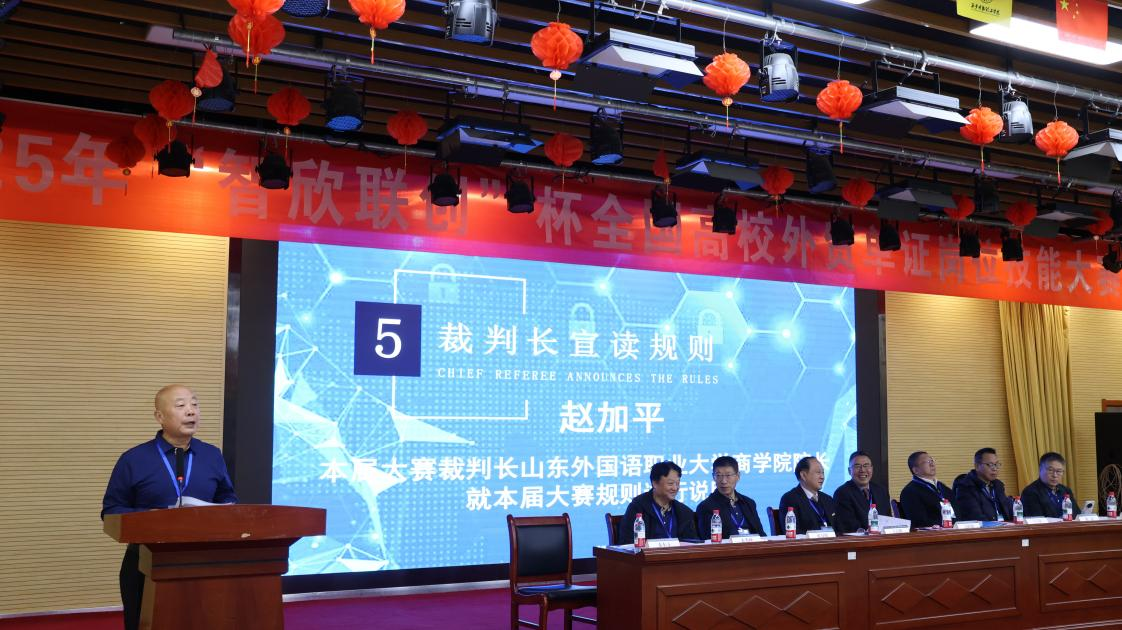 本届大赛技术支持方企业代表辛玉麟先生在讲话中谈到,企业将充分发挥技术优势,为赛事提供全方位支持,助力打造公平、专业的竞技环境。大赛裁判长、山东外国语职业大学商学院院长赵加平教授,西安明德理工学院国际经济与贸易专业学生林春慧先后代表裁判员、参赛学生进行宣誓。