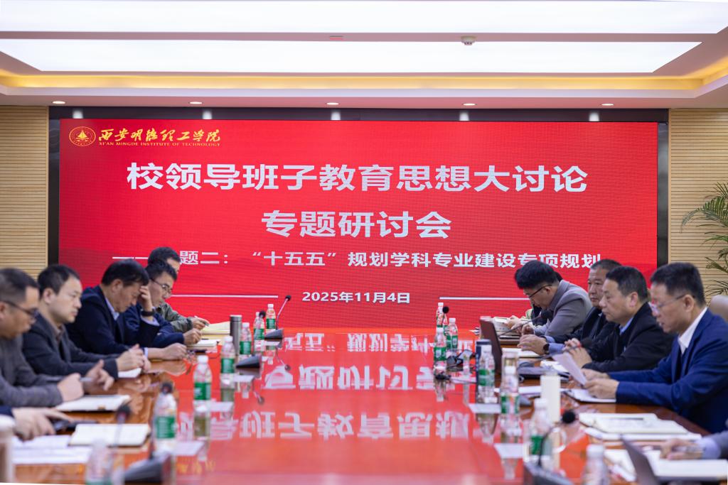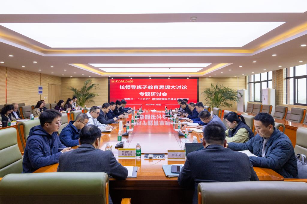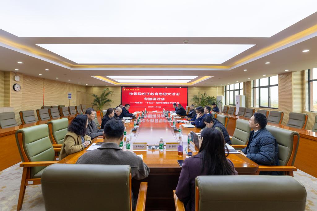为推进学校“十四五”规划收官和“十五五”及中长期教育事业发展规划研究编制工作,10月27日至11月10日,学校先后召开4场校领导班子教育思想大讨论专题研讨会,认真学习贯彻党的二十届四中全会精神,分别围绕学校“十五五”及中长期教育事业发展规划的信息化建设、学科专业建设、师资队伍建设、校园建设等专项规划及总规划框架结构进行研讨交流,凝聚发展共识。全体校领导、相关职能部门、教辅单位、二级学院负责人参加会议并研讨交流。会议由校党委书记马川鑫主持。