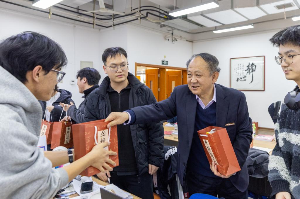 随后,校领导为在场学子发放满载着祝福与关怀的“考研能量包”,并与同学们亲切交流,了解他们的复习进度和实际需求。