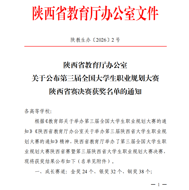 近日,第三届全国大学生职业规划大赛陕西赛区总决赛获奖名单正式揭晓,我校学子凭借扎实的职业规划素养、清晰的职业发展思路在全省众多参赛选手中脱颖而出,成功斩获省级铜奖,为校争光!