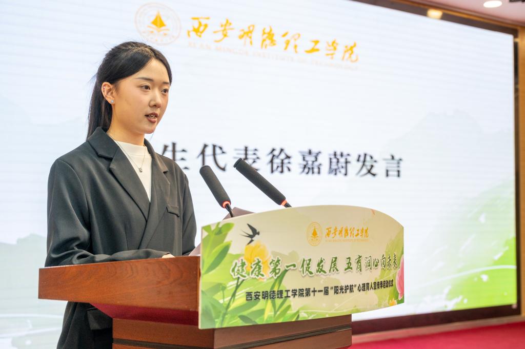 会上,童杨梓宣读了《西安明德理工学院关于开展春季学期学生心理健康工作集中攻坚暨心理育人宣传季实践活动的通知》。