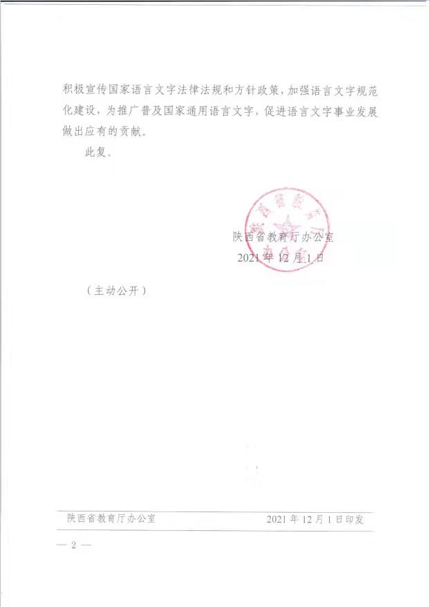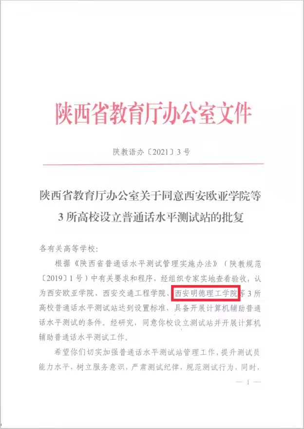 12月1日,陕西省教育厅下发通知,正式批准我校设立“普通话水平测试站”。自此,我校可自主组织开展面向校内师生的普通话水平测试工作,标志着我校语言文字工作进入了一个崭新的阶段。