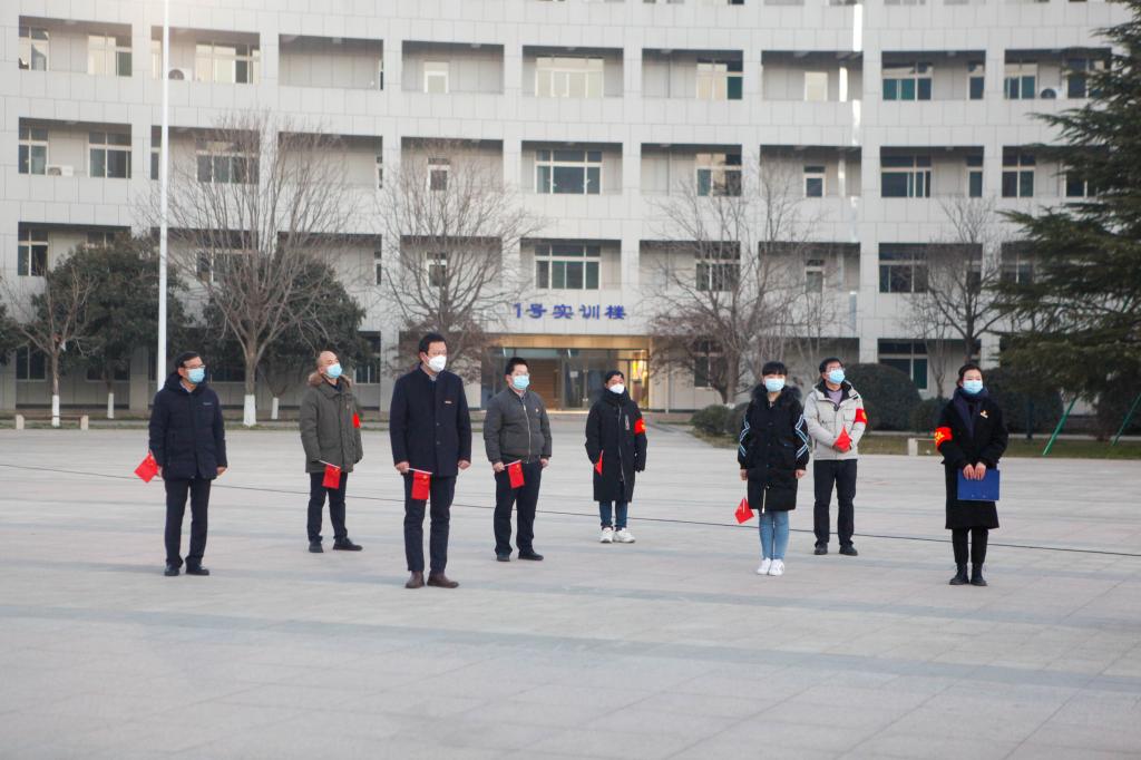 时序更替,华章日新。2022年1月1日,学校在中心广场举行了以“云聚国旗下齐心战疫情”为主题的2022年元旦主题升旗仪式,升旗仪式通过云端直播。校领导与在校留守的疫情防控一线教职工代表参加升旗仪式。