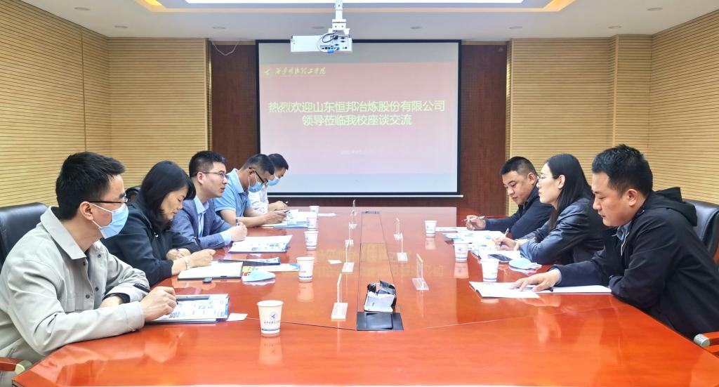 座谈会上,王东辉就我校办学沿革、本专科专业设置、2022届毕业生情况向到访客人做了详细介绍。王文华介绍了山东恒邦冶炼股份有限公司发展历程、规模、业务范围及本次招聘的专业方向。