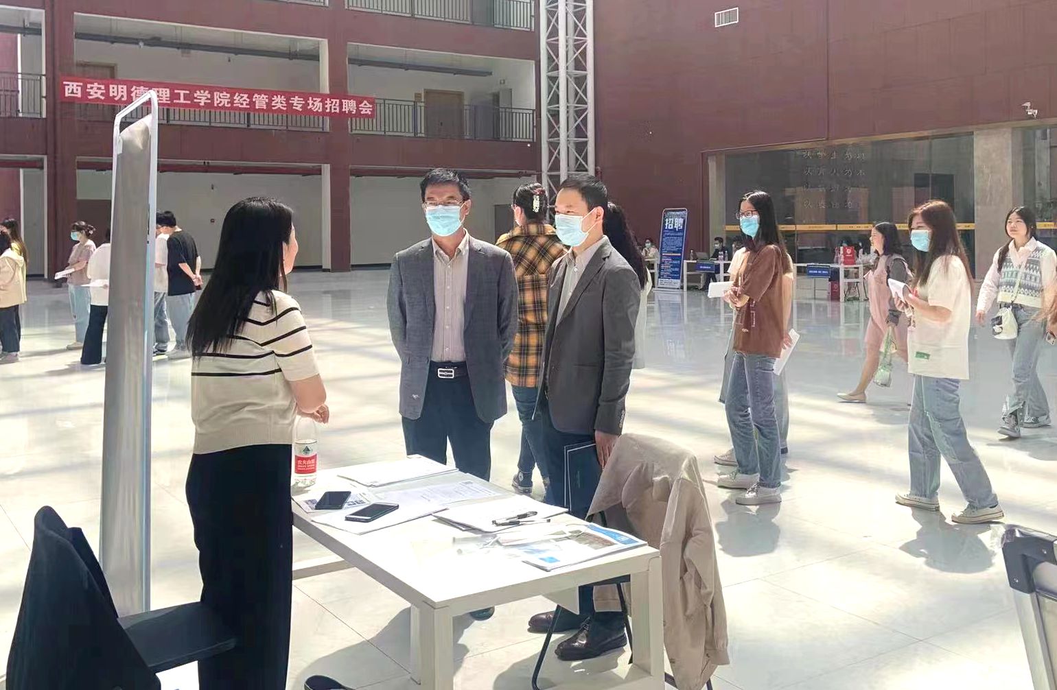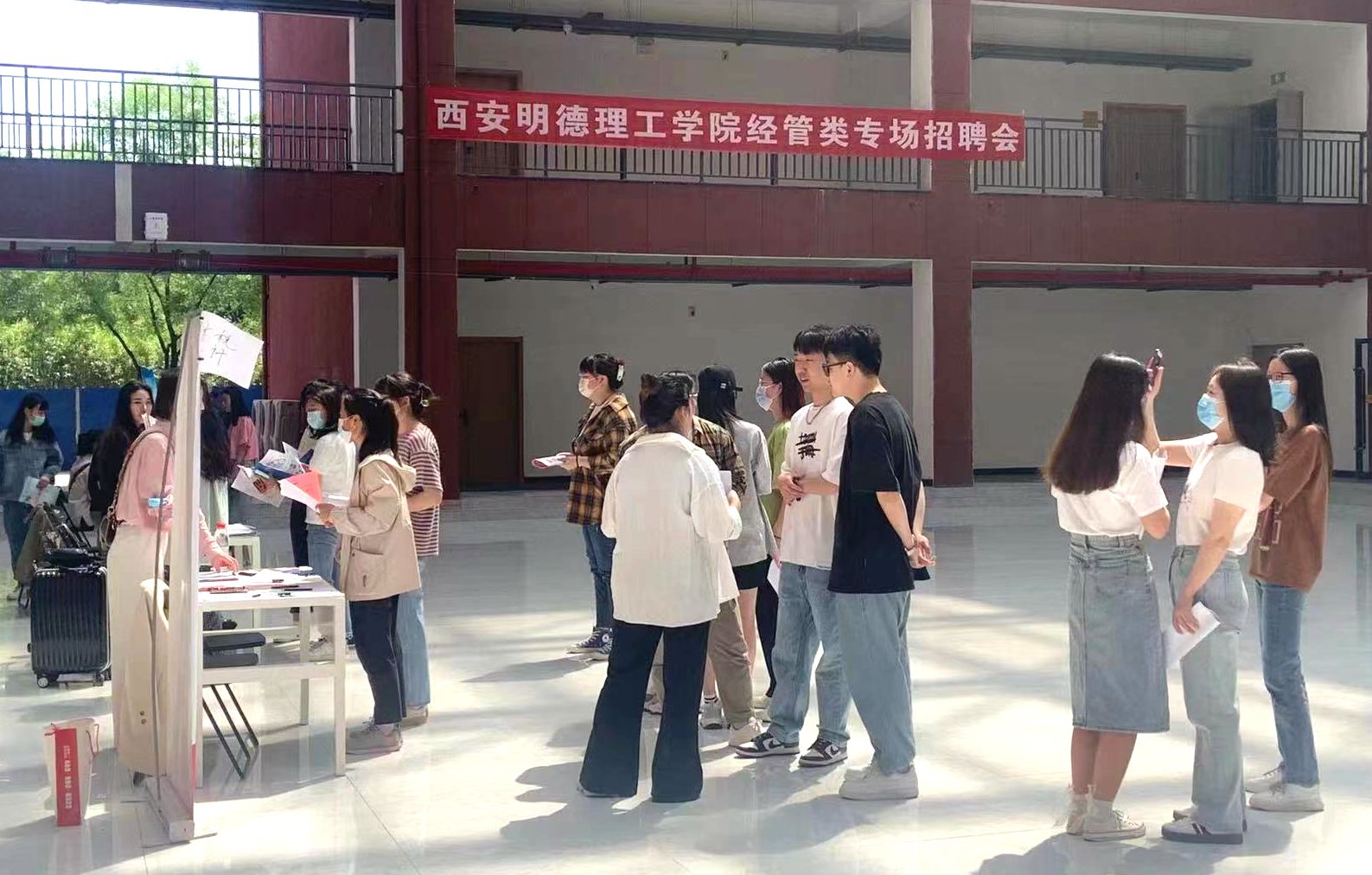 为更好地服务毕业生就业,实现校企供需对接,在经济与管理学院协调下,4月26日,经济与管理学院联合陕西秦商总会、西安市代理记账行业协会在学校明志楼中厅举办西安明德理工学院2022届毕业生经管类专场招聘会,陕西秦商企业综合服务有限公司、陕西华创企业集团有限公司、卓翔企业集团(西安)有限公司、东岭集团等16家企业参会,提供岗位需求百余个,经济与管理学院2022届在校未就业的毕业生参加了应聘。