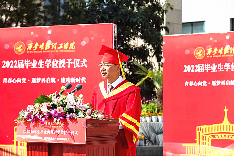 今天,对于西安明德理工学院来说,同样是一个值得庆贺的日子,我们满怀喜悦,在这里隆重举行2022届学生毕业典礼,共同见证2958名同学的人生重要时刻。在此,我谨代表全校师生员工,代表袁汉源董事长、阎东明书记,向全体毕业生致以热烈的祝贺和诚挚的祝福!向精心培养你们成长成才的老师和家长们,致以崇高的敬意和衷心的感谢!