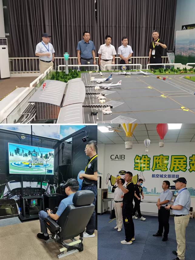 在陕西金宇航空科技有限公司董事长、总经理丁捷,副总经理周悦,市场总监冉磊,质量总监李勇,培训中心经理杨梦妮,市场部经理马瑾的陪同下,我校一行人员参观了金宇航空民航维修培训机库及雏鹰展翅航空科普研学基地,并进行了深入的座谈和交流。
