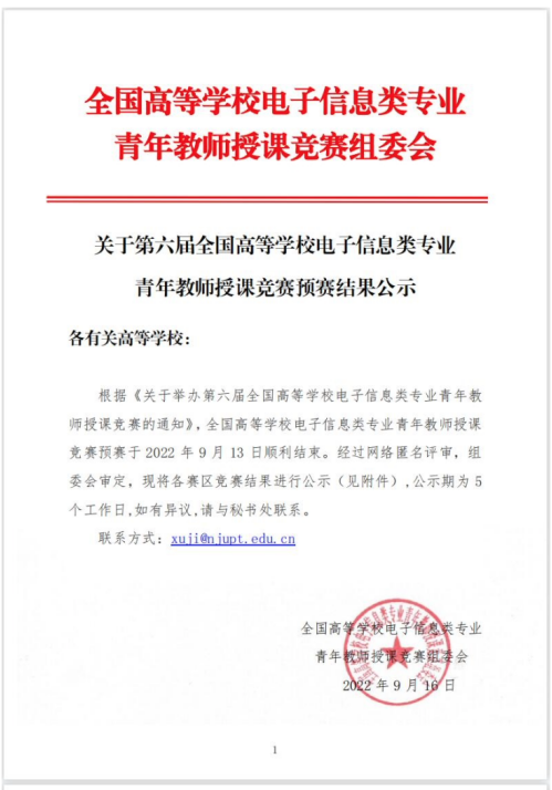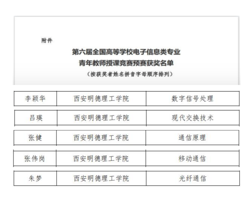 2022年9月16日,第六届全国高等学校电子信息类专业青年教师授课竞赛预赛结果公示,我校信息工程学院五名教师获得华西赛区三等奖。