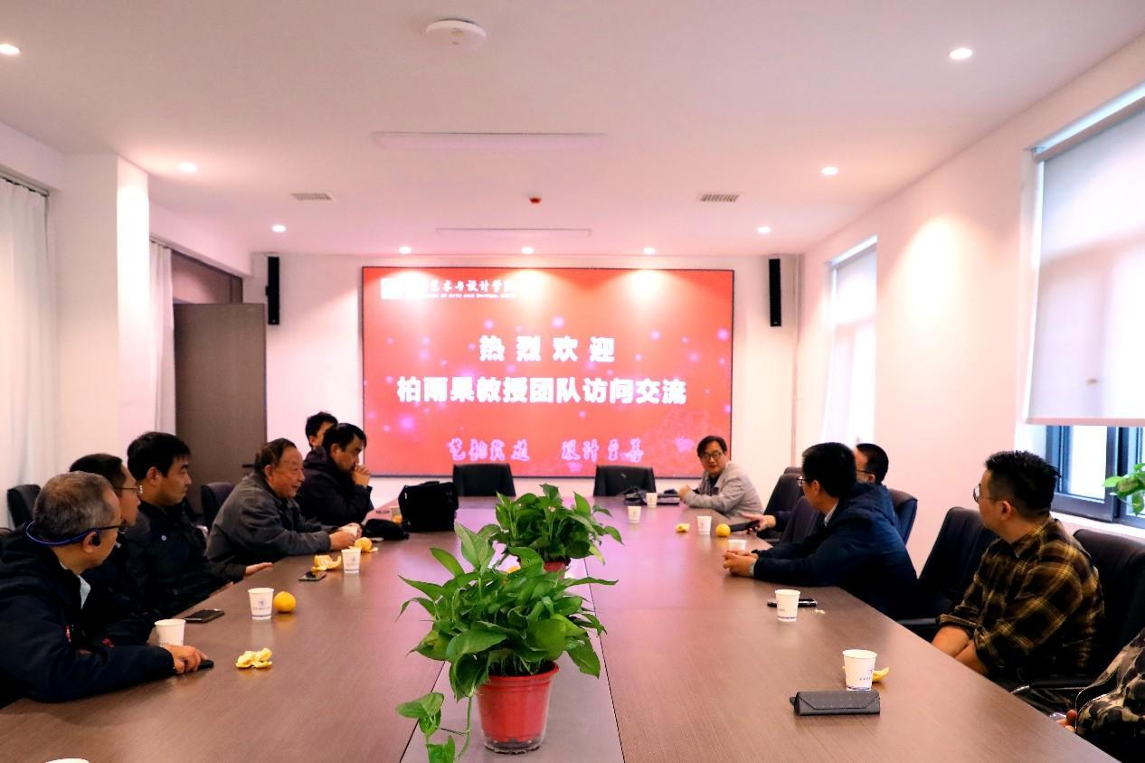 会谈中,苟秉宸院长对柏雨果教授团队的来访表示热烈欢迎,冯强副院长介绍了学院专业建设等方面的发展概况。双方探讨了在人才培养、师资队伍建设、教学科研、平台共享等方面开展的深度合作的可能性,对我校新近获批的影视摄影与制作本科专业的建设方向进行了深入交流。