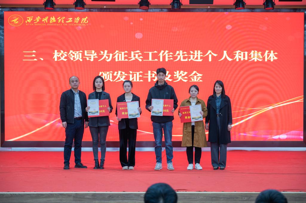 会上,学校党委副书记董昊为征兵工作先进单位颁发了奖状及奖金。招生就业中心副主任王东辉、人民武装部部长童杨梓为征兵工作先进个人颁发了证书及奖金。