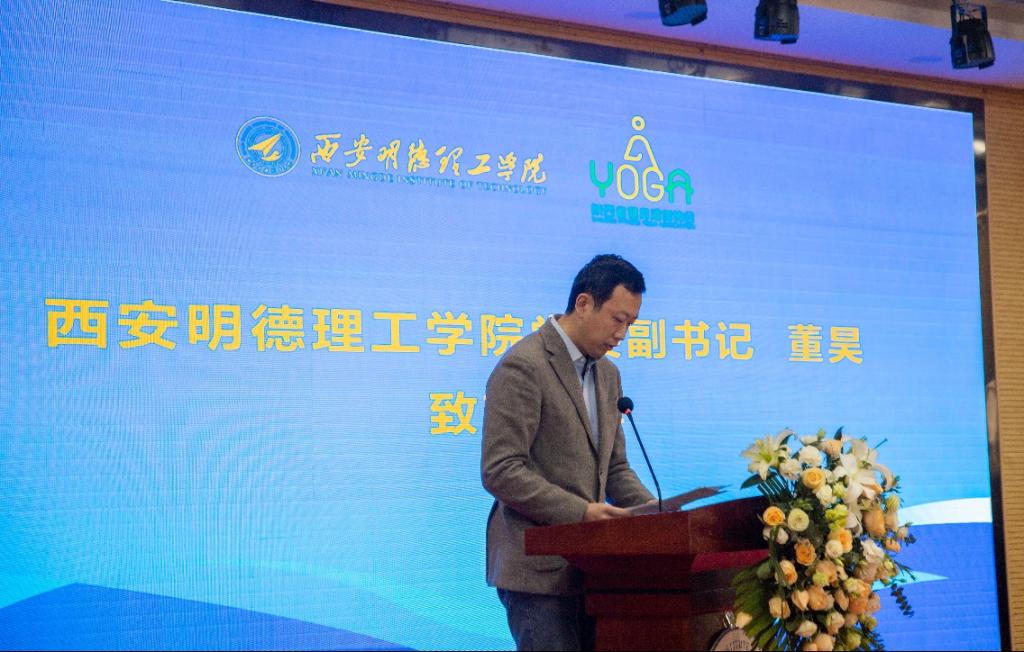 大会第一单元:陕西省健身瑜伽协会裁判员委员会成立大会举行,西安明德理工学院党委副书记董昊在成立大会上致欢迎词,介绍了学校办学历史、办学特色、办学成绩、办学条件等,并对莅临本次大会的各级领导、嘉宾、委员代表,致以最热烈的欢迎和最衷心的感谢。