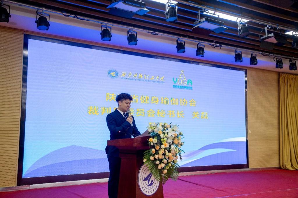 2023年3月26日,由西安明德理工学院承办的陕西省健身瑜伽协会裁判员委员会成立大会暨2022年度陕西省健身瑜伽协会表彰大会成功举办。陕西省健身瑜伽协会主席金新刚,党支部书记郭飙,副主席孟周焕、康莉,西安翻译学院体育学院副院长马庆,西安明德理工学院党委副书记董昊,马克思主义学院与通识教育学院党委书记王君涛,通识教育学院副院长郑薇,以及来自全省的130余名参会委员、代表共聚一堂,见证陕西省健身瑜伽协会裁判员委员会的成立。会议由协会艺术顾问、裁判员委员会秘书长关磊,协会常务理事赵琬钰主持。