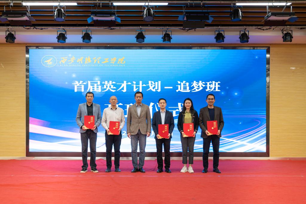 在开班仪式会上,童杨梓宣读了《西安明德理工学院英才计划“追梦班”实施方案》及首届英才计划“追梦班”学员名单。董昊代表学校为“追梦班”授班旗并为班主任颁发聘书。学校首届英才计划“追梦班”学员代表102012103班宋固磊同学进行表决心发言。我校2011级校友、西北工业大学博士、智能制造与控制技术学院专职教师叶天老师通过视频方式致寄语,勉励“追梦班”学员珍惜机会、勤奋好学。我校2017级校友、西北工业大学在读硕士研究生高少天同学亲临现场为“追梦班”学员作学习经验分享,勉励同学们要自律、自信、自强,鼓励同学们找准目标,积极深造,发奋努力。