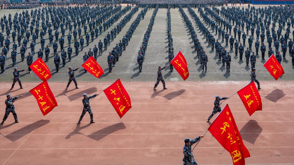随后,军训团举行了军事科目汇报演练,倒功操、擒敌拳、战术、花样队列等表演。