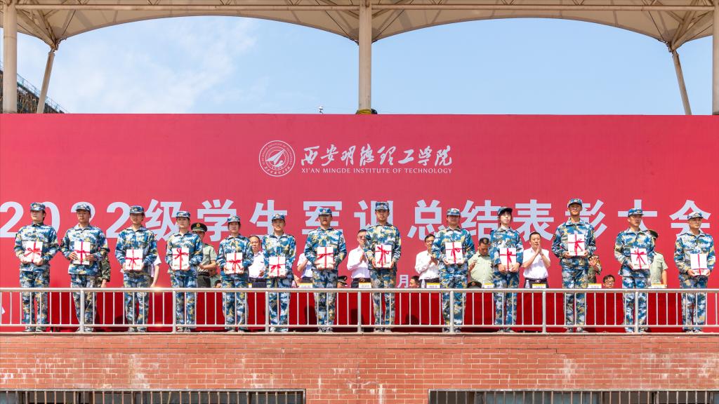 西安明德理工学院2022年学生军训总结表彰大会圆满结束。