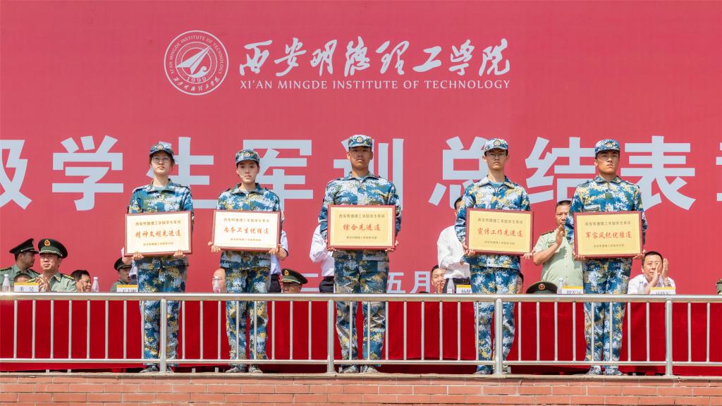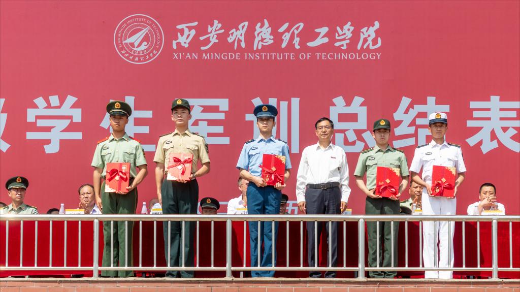军训团团长李东君宣读了《西安明德理工学院2022年军训团表彰决定》,并由现场领导、嘉宾为获奖先进集体及个人颁奖。