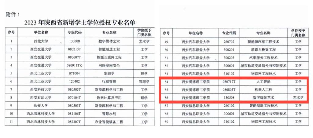 近日,陕西省学位委员会印发了《关于2023年新增及调整学士学位授权专业的批复》,我校人工智能、机器人工程、数字媒体艺术等三个专业顺利通过评审,增列为学士学位授权专业。