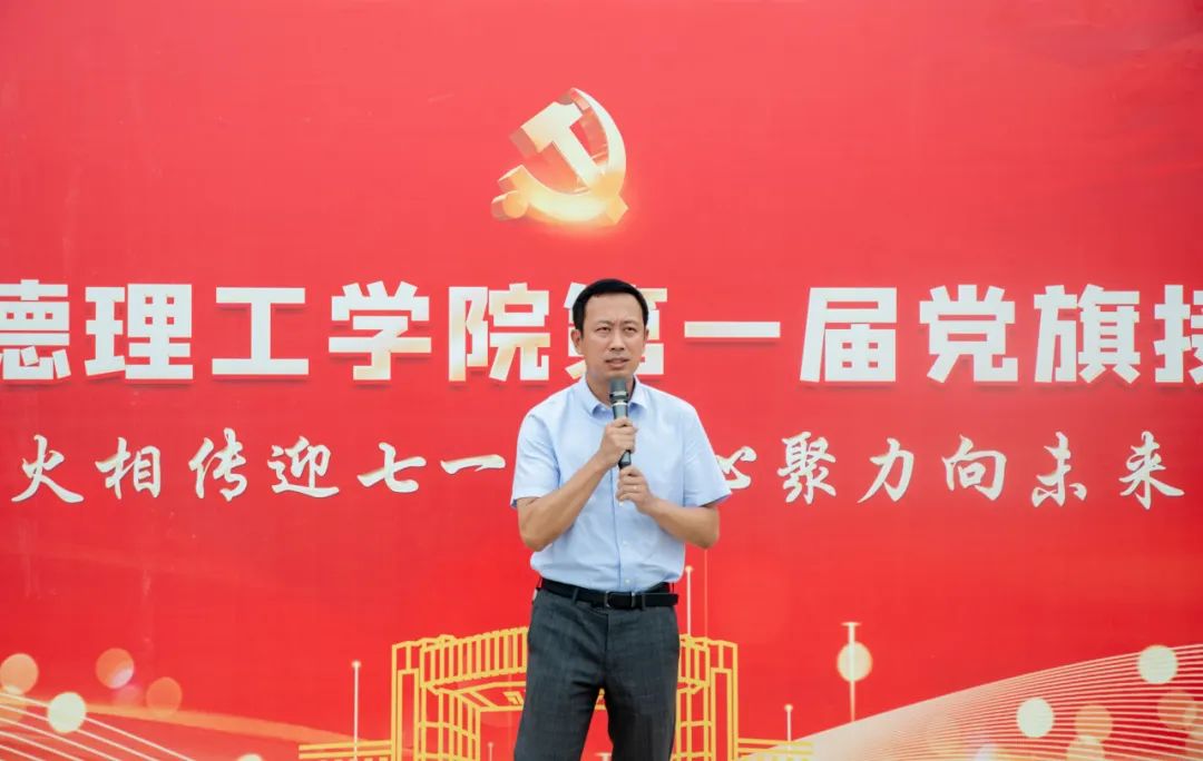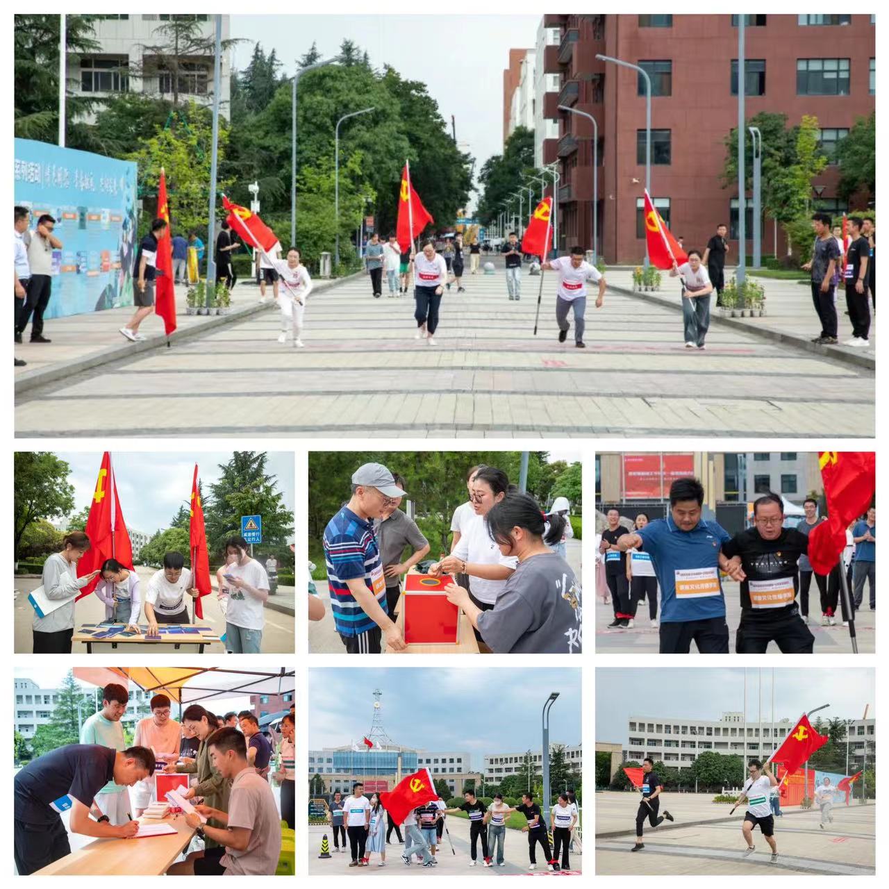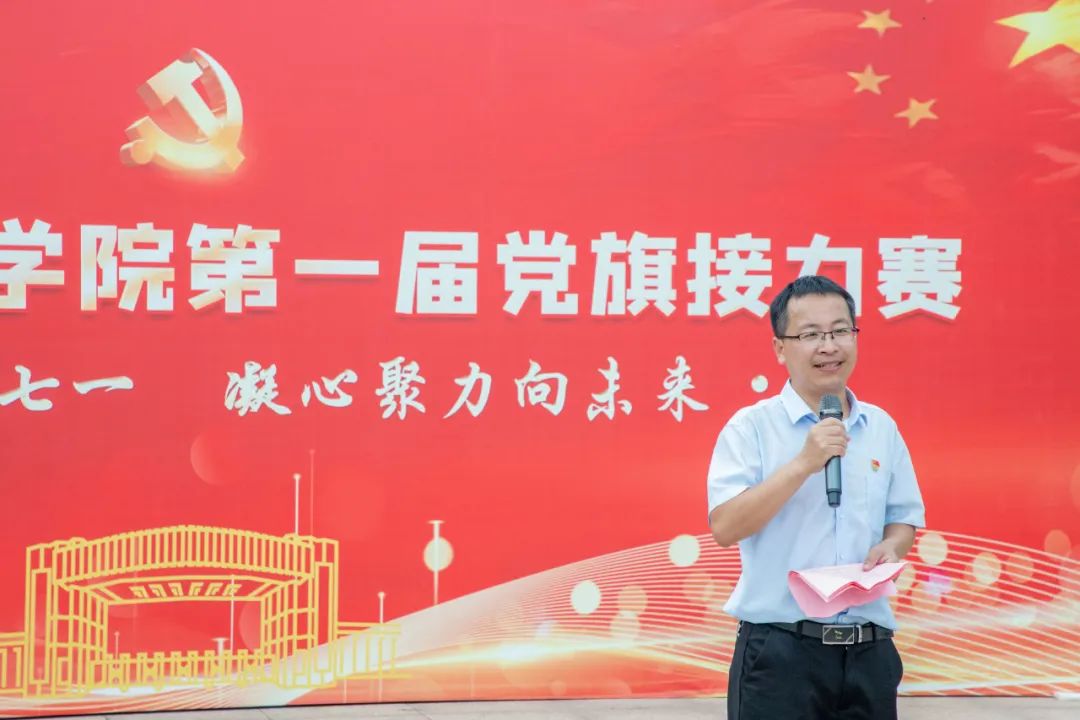为庆祝中国共产党成立102周年,推动学习贯彻习近平新时代中国特色社会主义思想主题教育见行见效、走深走实,激励和引领广大党员提高思想认识和政治站位,6月27日下午,由学校党委组织宣传部主办、校团委协办的“薪火相传迎七一·凝心聚力向未来”庆祝中国共产党成立102周年暨第一届党旗接力赛在中心广场举行。校党委副书记、纪委书记董昊及相关部门负责人、各参赛代表队、师生代表参加开幕式。由各基层党委(党总支)组成的13支代表队,精神饱满、热情洋溢地参加比赛。开幕式由党委组织宣传部副部长张亚平主持。